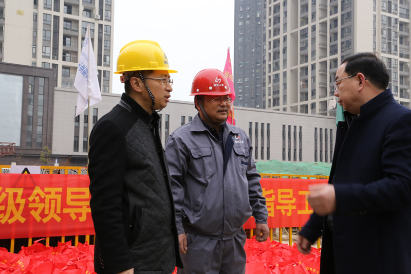 The morning of January 17th, Guo Diming, chairman of the trade union group international company chief engineer Zhang Yuezhong came to the Wuhan city Hongshan District Hubei industrial building, the disabled rehabilitation center site, understand the workers to work, life and labor protection, check the site canteen, staff dormitory, migrant workers amateur school, and presented the "construction workers' health manual", "reading" and other books of enlightenment. Near noon, Guo Diming accompanied the vice president of the Hongshan Federation of trade unions Wang Guosheng and his delegation to the site staff, the District Federation of trade unions sent gifts to the project holiday. Project Manager Ma Dongqing, deputy manager Zhu Xiangbin introduced the basic situation of the project.