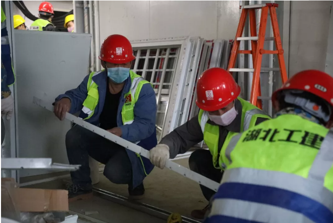 As soon as the finishing of the Huoshenshan mission, HICC workers received another order from Wuhan epidemic prevention and control headquarters: go to Wuhan Exhibition Hall in the East-west Lake region to build a mobile cabin hospital, which will be used to treat patients with mild NCP patients.