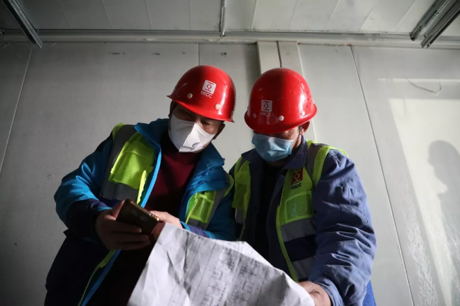 On February 1, after receiving instructions from the construction headquarters of Huoshenshan hospital, HICC commandos arrived at the spot on the afternoon of the same day. under the unified command of the temporary party branch of the project, Installation Company, International Engineering Company, Engineering General Contracting Company, Installation division, and other units took turns to grab some rest. Workers may have some rest but the work wouldn’t. The construction was carried out 24 hours a day and finally completed the set task at 2 am on February 4th.