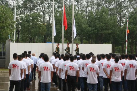 The Installation Division held a flag-raising ceremony at the project department of Wuhan Maple Leaf International School.