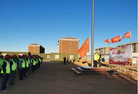 The installation company held a flag-raising ceremony at the site of the electromechanical industrial park project.