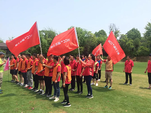 随后,参加活动的员工分成四个团队,他们将齐心协力、通力合作,完成各项拓展训练任务。