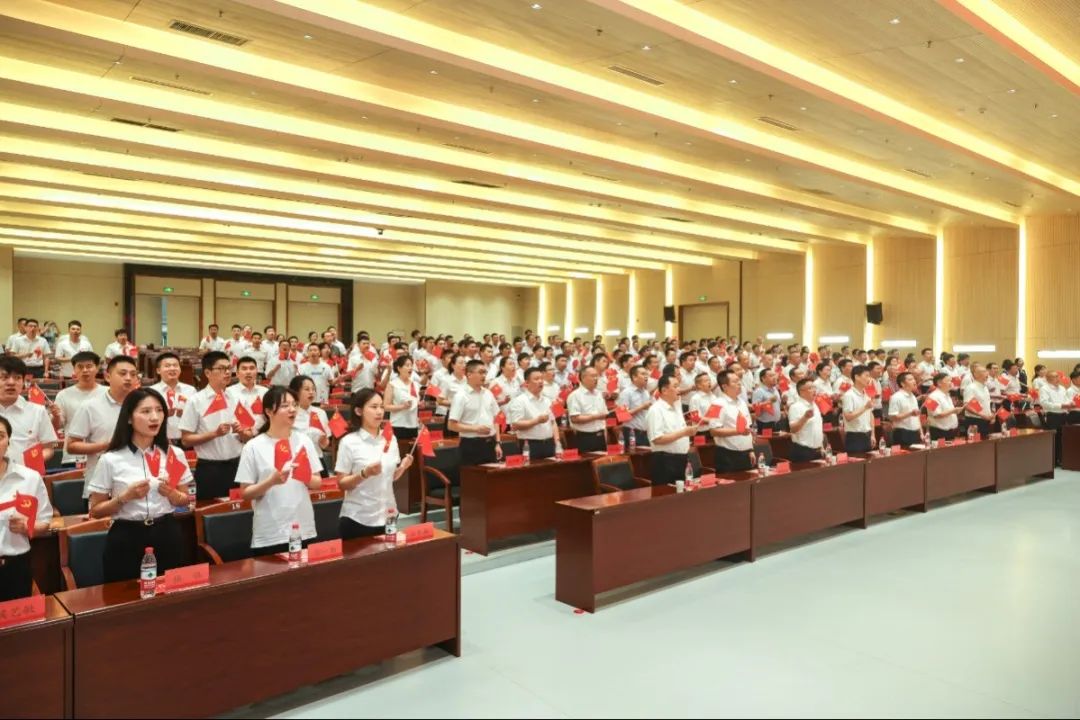 7月6日上午,威廉希尔2023年“七一”表彰大会暨党员发展培训系列活动在襄阳隆重举行。联投集团领导、威廉希尔党委班子成员、“光荣在党50年”老党员代表、各成员单位党组织书记、党建工作分管领导及党建工作负责人、受表彰的先进基层党组织、优秀党务工作者、优秀党员代表以及参加党员发展培训的全体学员参会。
