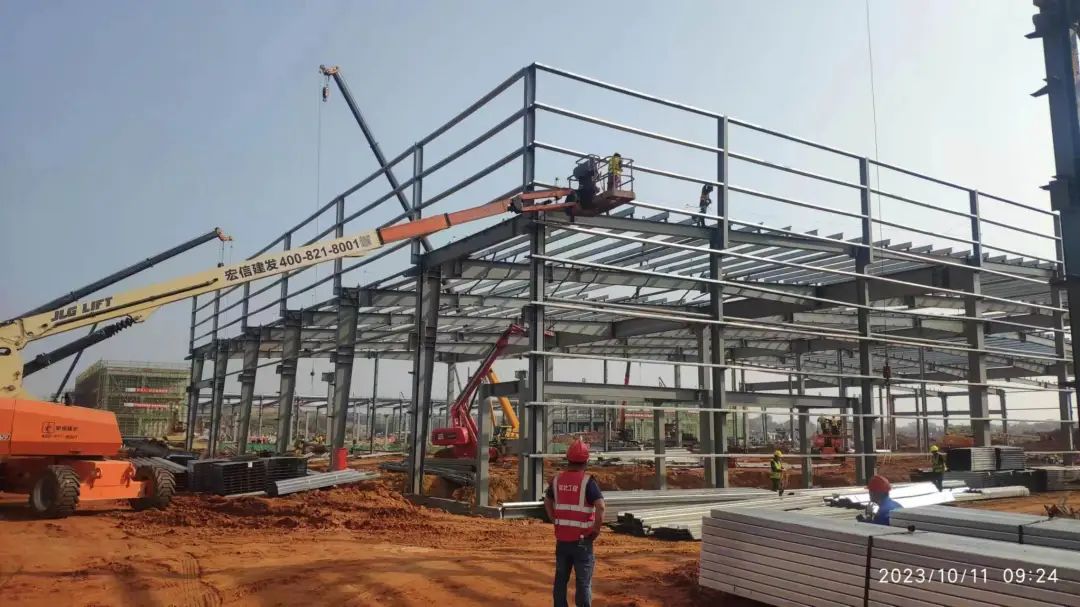 海关查验区共有独基及承台119个,完成119个,完成率100%;贴建办公楼部分已于10月5日全部封顶,钢结构总吨位530吨(含檩条),加工构件到场450吨,现场已安装420吨,完成率79.24%。